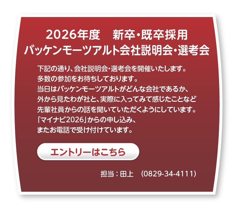 - 社会保険完備(厚生・健康・雇用・労災)・慶弔見舞金・退職金・家族プレゼント